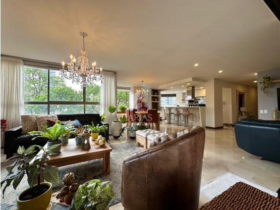 Venta apartamento en Lalinde, El Poblado.  Área: 215 metros, cuatro habitaciones familiares, habitación de servicio, cuatro baños mas baño de servicio, cocina abierta reformada, zona de ropas, estudio o sala de television, salón comedor muy amplio, balcón-terraza, tres parqueaderos, dos cuartos útil.  Edificio con salón social, cancha multiple, juegos infantiles, parqueadero visitantes.  Cerca al parque del Poblado, hoteles, restaurantes, supermercado, a cinco minutos de San Diego, Santafe, Oviedo,  facilidad de transporte público.