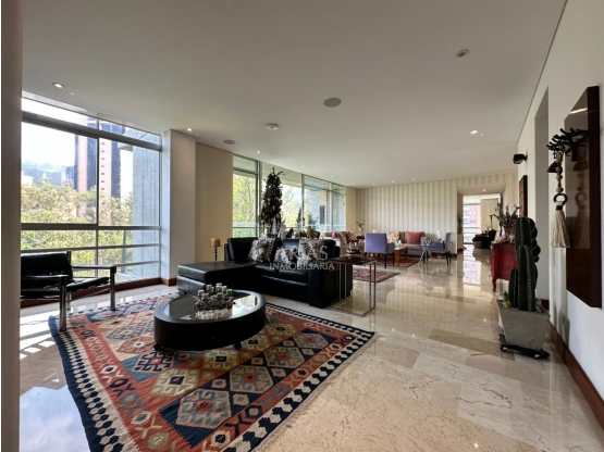 Pesos ColombianosVenta de apartamento en Las Santas, El Poblado. Área 245 metros, 3 habitaciones +serv, 4 baños +serv, amplio balcon, sala, comedor, sala tv, cocina integral, zona de ropas, 3 parqueaderos y util. Unidad con gimnasio, piscina, juego infantil, mascotas, zona verde y parqueaderos de visitantes. A unos minutos de centro comercial el Tesoro, mall del este, supermercados, transversarl superior e inferior.