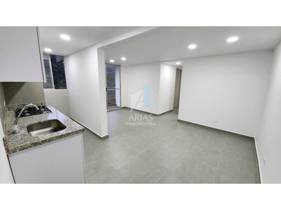Pesos ColombianosVenta apartamento en Sabaneta, Loma San Jose parte alta. Área 58 metros, tres habitaciones, dos baños, cocina abierta, zona de ropas, salón comedor, balcón, nicho para estudio, parqueadero, cuarto util. Unidad con piscina, salón social, juegos infantiles, parqueadero visitantes. Cerca a Ceipa, C.C. Aves Maria.